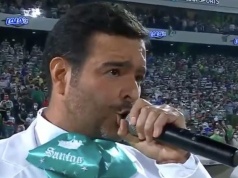 Etiqueta: El ridículo de Pablo Montero al equivocarse en la letra del Himno Nacional durante el partido entre Santos y Cruz Azul